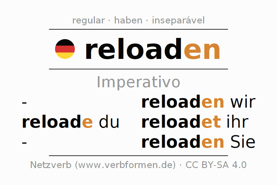 O verbo reloaden é totalmente conjugado em todas as pessoas e números no Imperativo Presente