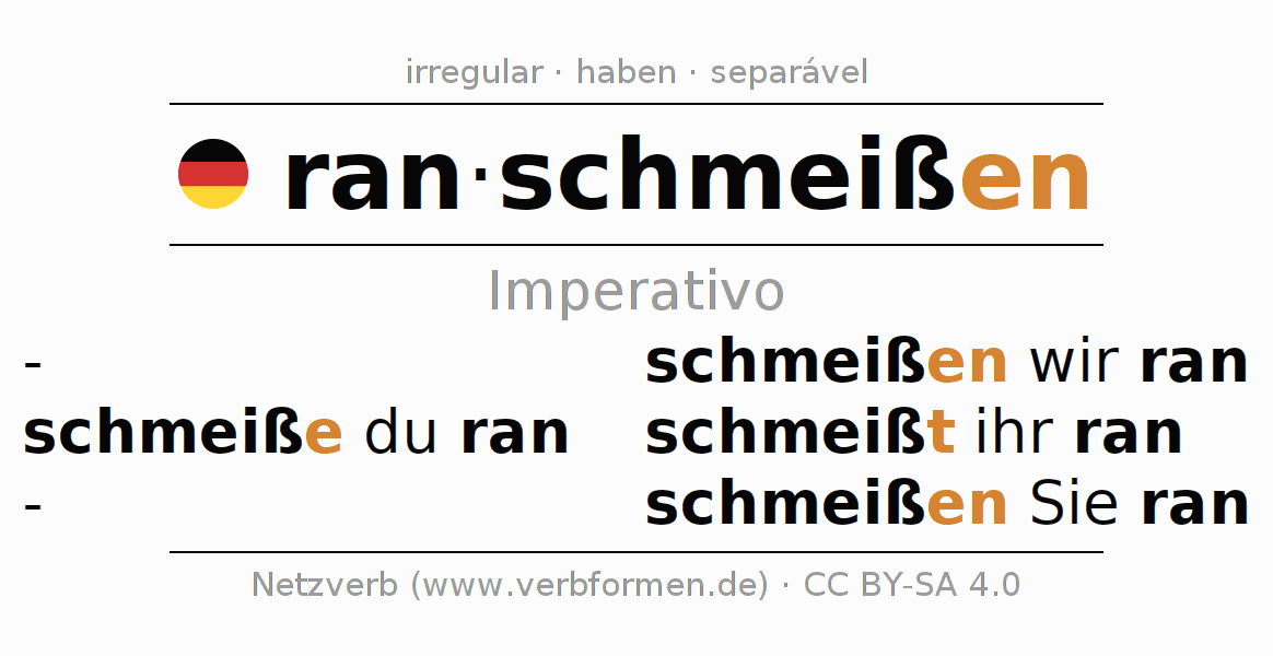 - Como conjugar o verbo ranschmeißen no Imperativo?