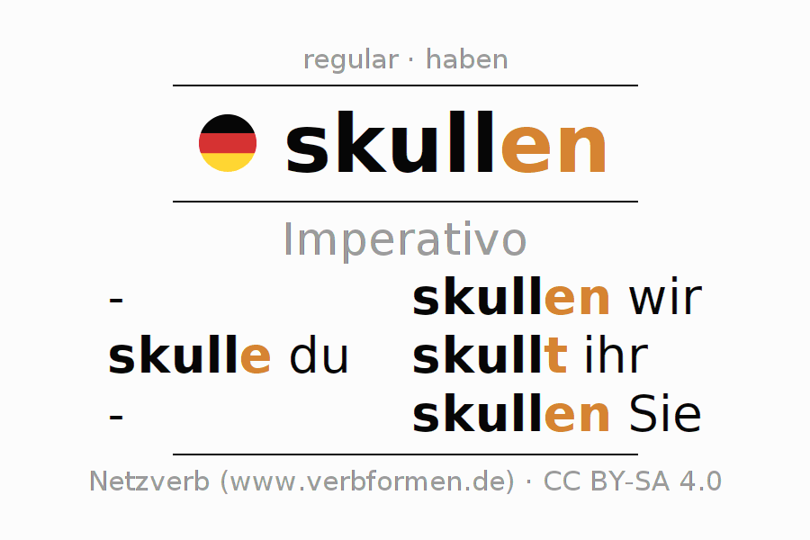 O verbo skullen é totalmente conjugado em todas as pessoas e números no Imperativo Presente
