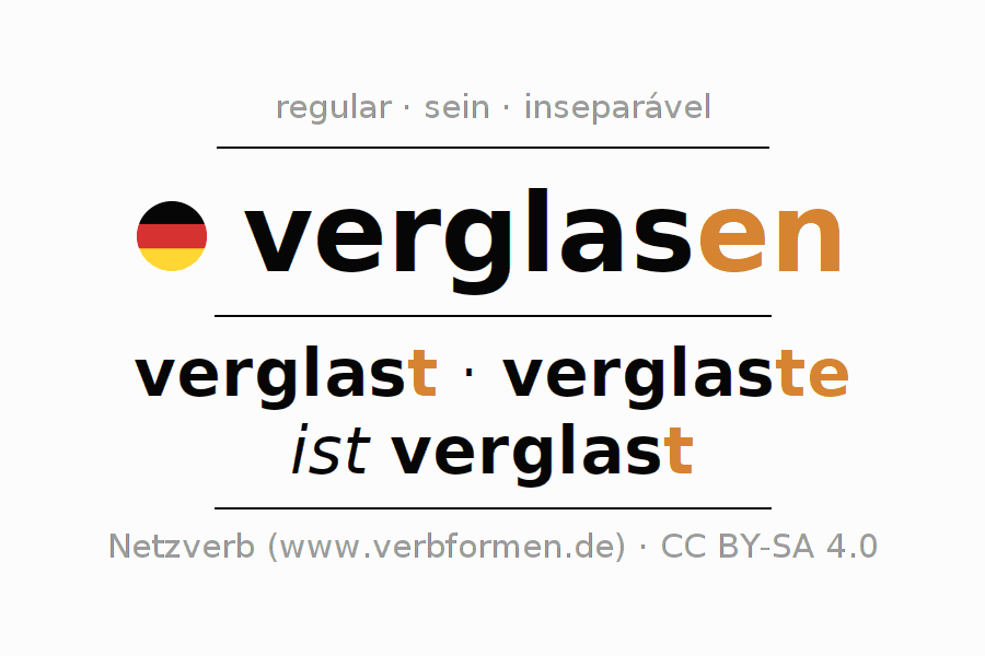 As formas de conjugação do verbo verglasen (vidro) no imperativo são: verglase (du), verglasen wir, verglast (ihr), verglasen Sie