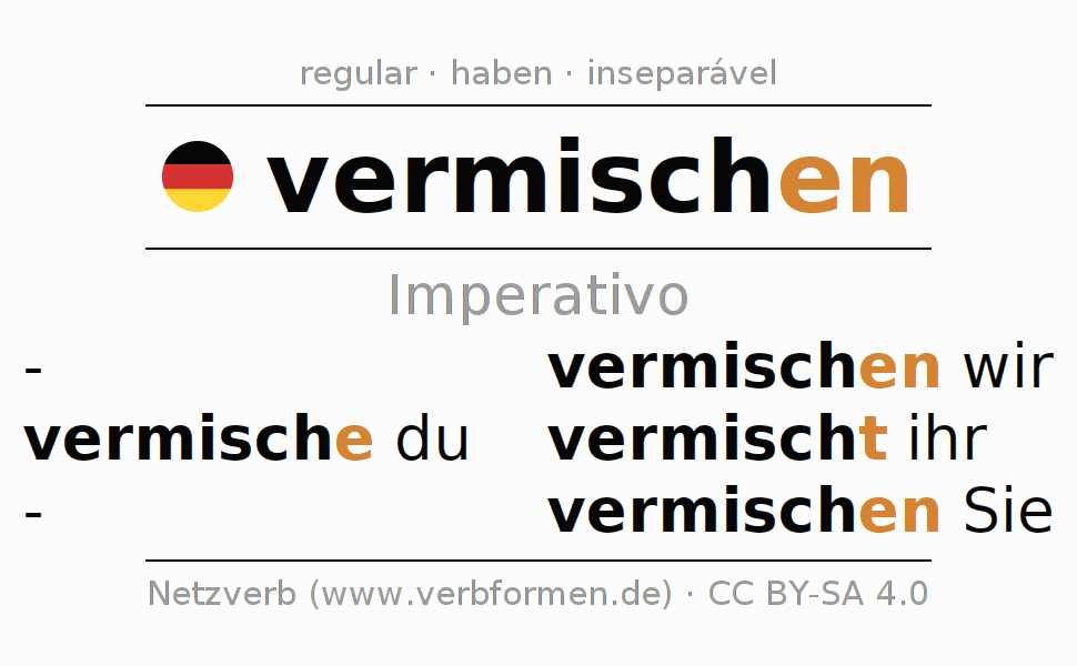 O verbo vermischen é totalmente conjugado em todas as pessoas e números no Imperativo Presente
