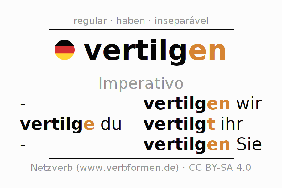 O verbo vertilgen é totalmente conjugado em todas as pessoas e números no Imperativo Presente