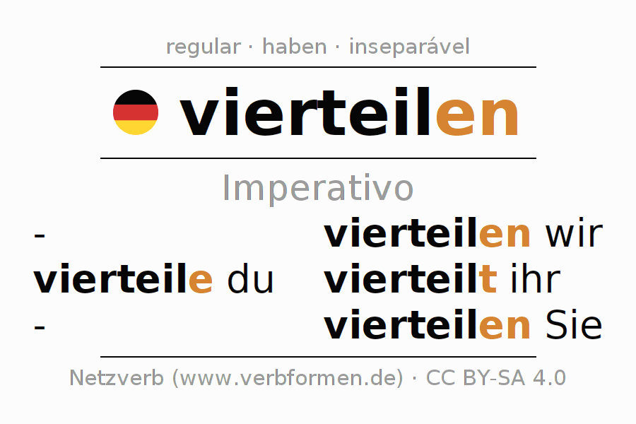 O verbo vierteilen é totalmente conjugado em todas as pessoas e números no Imperativo Presente