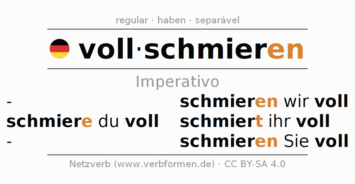 - Como conjugar o verbo vollschmieren no Imperativo?