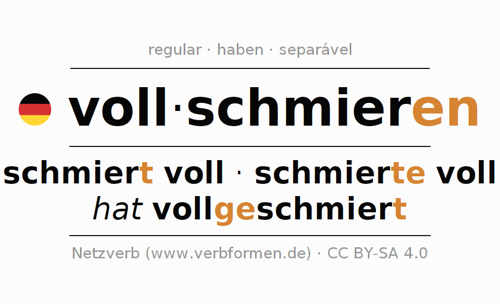 - Como conjugar o verbo vollschmieren no Infinitivo?