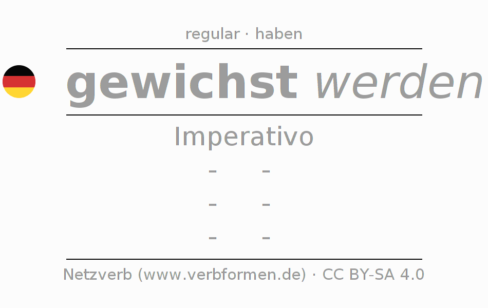 A conjugação do verbo wichsen no Voz Passiva Imperativo Presente Imperativo é: -, -, -, -.A formação dessas formas segue determinadas regras gramaticais. Os requisitos para a conjugação do verbo como forma verbal simples no wichsen do Imperativo. Comentários ☆