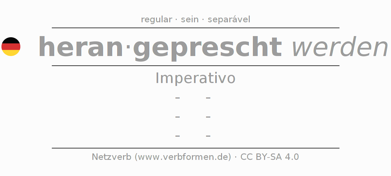 A conjugação do verbo heranpreschen no Voz Passiva Imperativo Presente Imperativo é: -, -, -, -.A formação dessas formas segue determinadas regras gramaticais. Os requisitos para a conjugação do verbo como forma verbal simples no heranpreschen do Imperativo. Comentários ☆