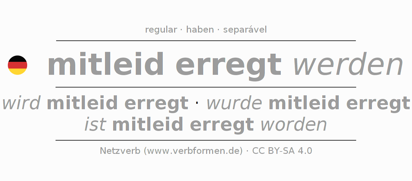 A conjugação do verbo mitleiderregen no Voz Passiva Imperativo Presente Imperativo é: -, -, -, -.A formação dessas formas segue determinadas regras gramaticais. Os requisitos para a conjugação do verbo como forma verbal simples no mitleiderregen do Imperativo. Comentários ☆
