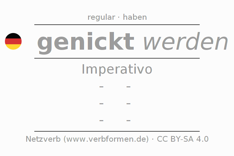 A conjugação do verbo nicken no Voz Passiva Imperativo Presente Imperativo é: -, -, -, -.A formação dessas formas segue determinadas regras gramaticais. Os requisitos para a conjugação do verbo como forma verbal simples no nicken do Imperativo. Comentários ☆