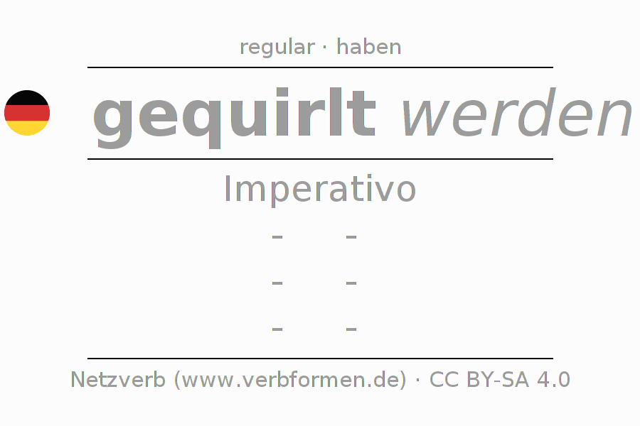 O verbo quirlen (hat) é totalmente conjugado em todas as pessoas e números no Imperativo Presente
