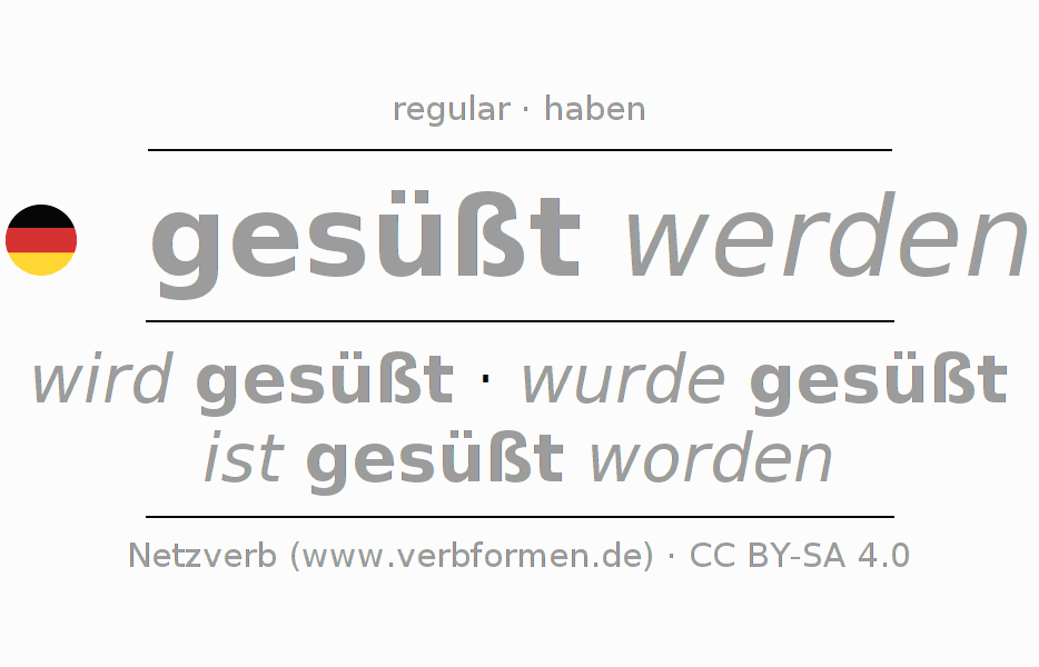 A conjugação do verbo süßen no Voz Passiva Imperativo Presente Imperativo é: -, -, -, -.A formação dessas formas segue determinadas regras gramaticais. Os requisitos para a conjugação do verbo como forma verbal simples no süßen do Imperativo. Comentários ☆