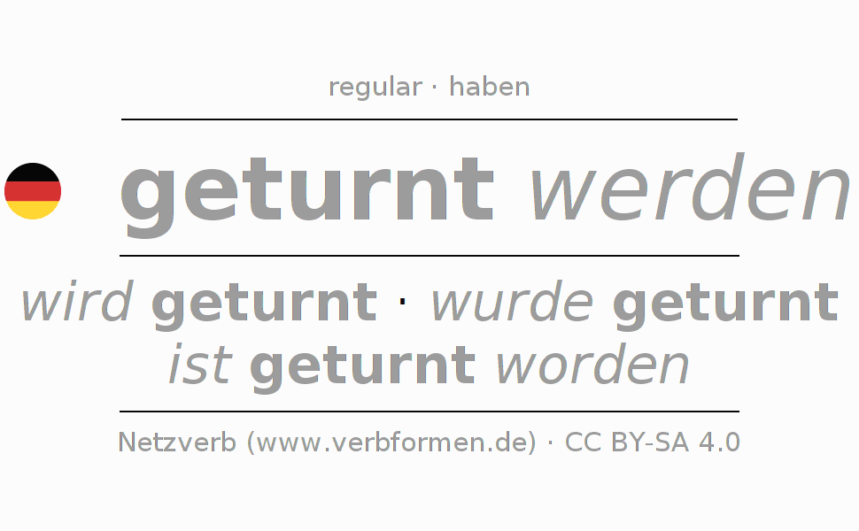 A conjugação do verbo turnen no Voz Passiva Imperativo Presente Imperativo é: -, -, -, -.A formação dessas formas segue determinadas regras gramaticais. Os requisitos para a conjugação do verbo como forma verbal simples no turnen do Imperativo. Comentários ☆