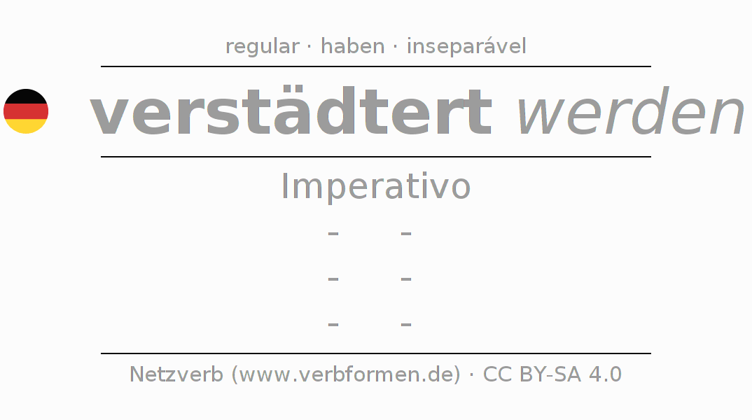 O verbo verstädtern (hat) é totalmente conjugado em todas as pessoas e números no Imperativo Presente