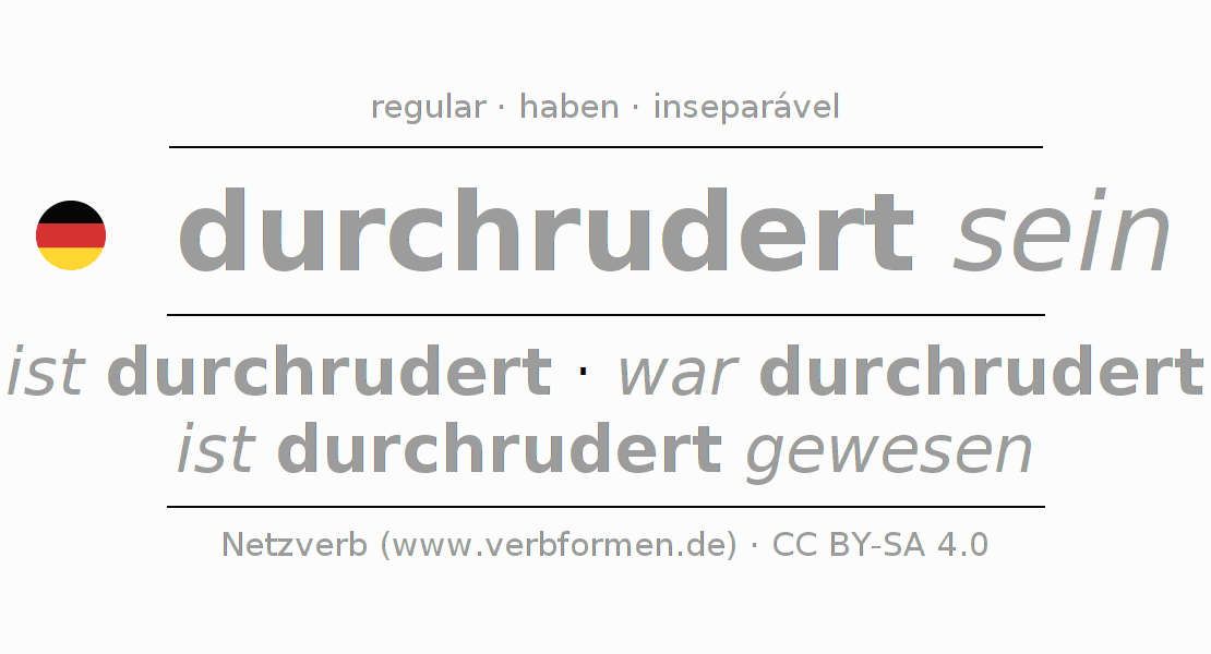 A conjugação do verbo durchrudern no Estado passivo Imperativo Presente Imperativo é: sei (du) durchrudert, seien wir durchrudert, seid (ihr) durchrudert, seien Sie durchrudert.A formação dessas formas segue determinadas regras gramaticais. Os requisitos para a conjugação do verbo como forma verbal simples no durchrudern do Imperativo. Comentários ☆