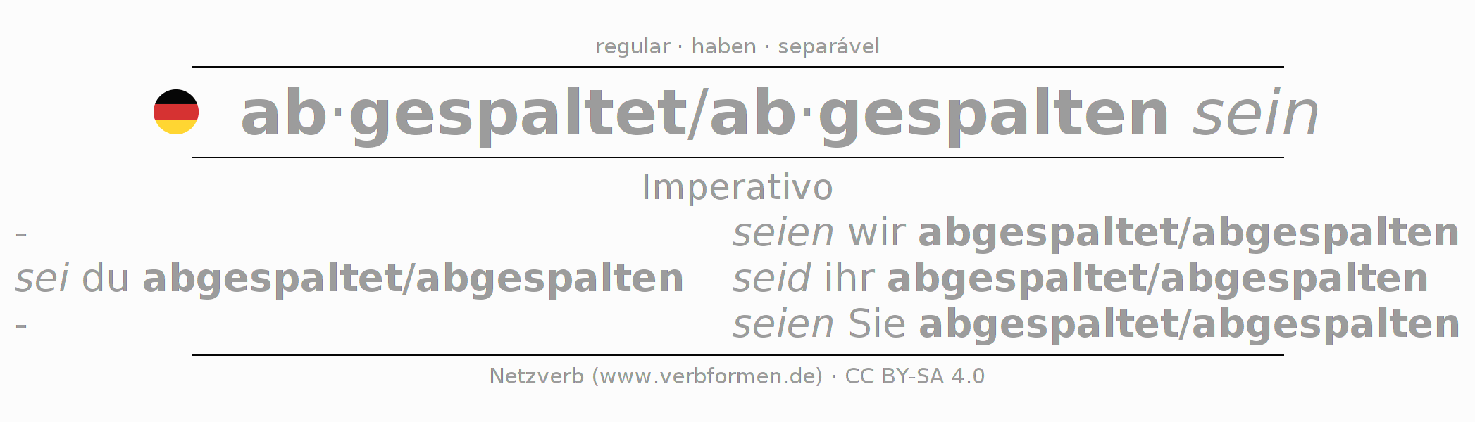O verbo abspalten é totalmente conjugado em todas as pessoas e números no Imperativo Presente