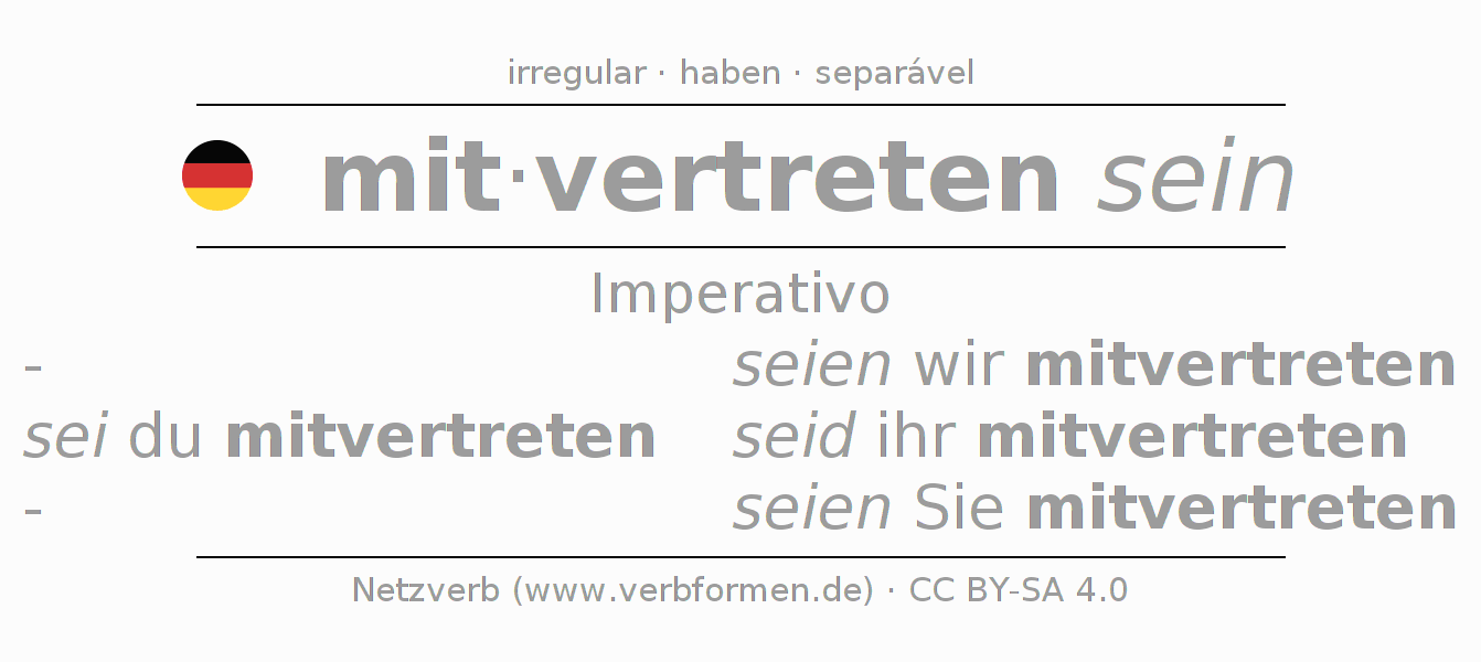O verbo mitvertreten (hat) é totalmente conjugado em todas as pessoas e números no Imperativo Presente