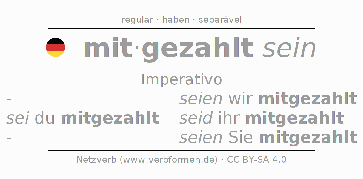 O verbo mitzahlen é totalmente conjugado em todas as pessoas e números no Imperativo Presente