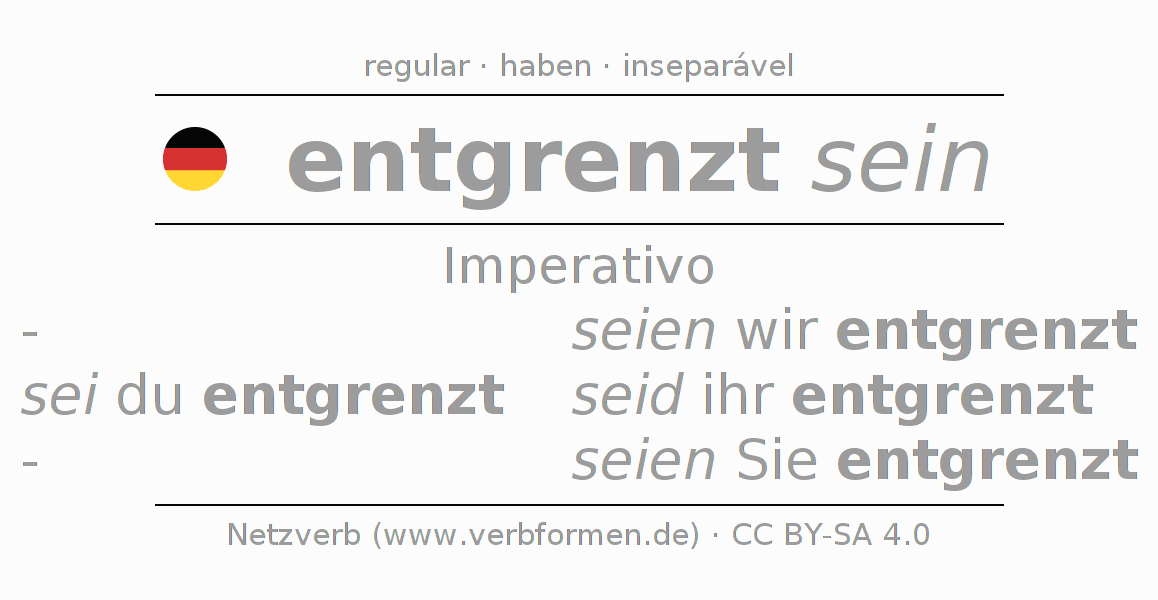 O verbo entgrenzen é totalmente conjugado em todas as pessoas e números no Imperativo Presente