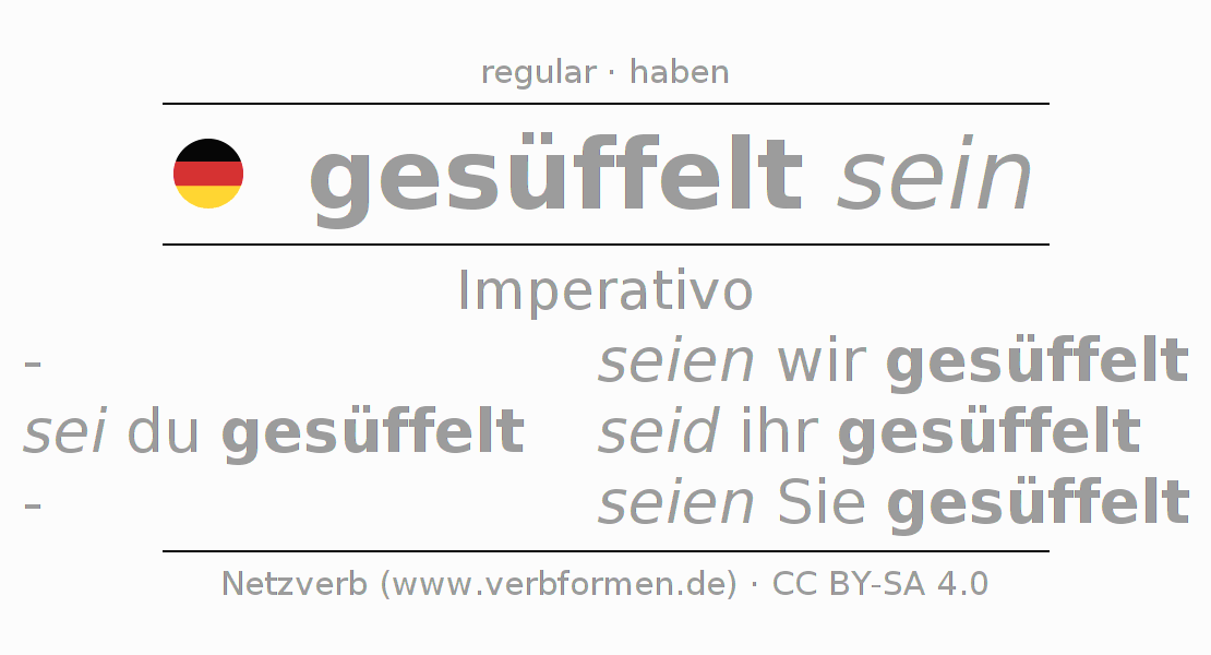 O verbo süffeln é totalmente conjugado em todas as pessoas e números no Imperativo Presente