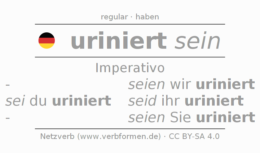 O verbo urinieren é totalmente conjugado em todas as pessoas e números no Imperativo Presente