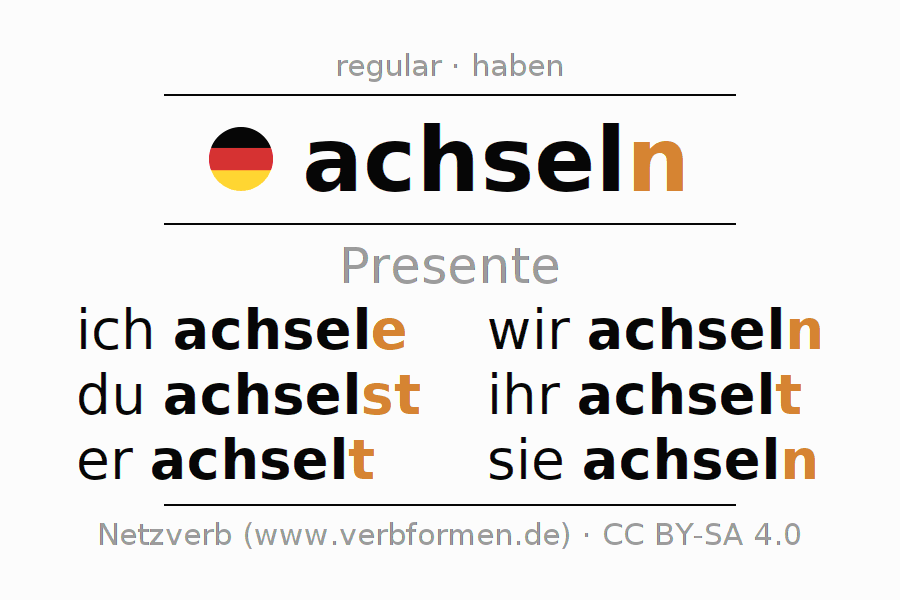 O verbo achseln é totalmente conjugado em todas as pessoas e números no Presente Indicativo