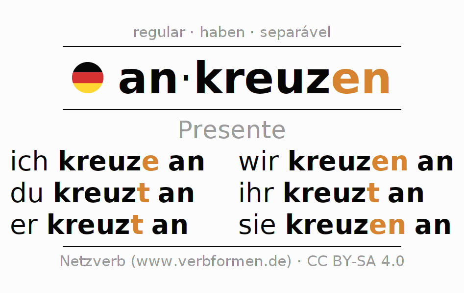 Formas verbais no Presente do verbo ankreuzen