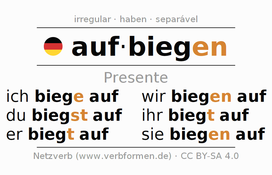 - Como conjugar o verbo aufbiegen no Infinitivo?