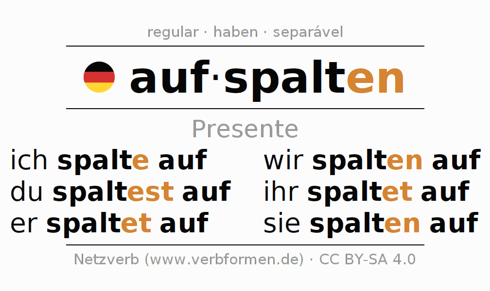 O verbo aufspalten é totalmente conjugado em todas as pessoas e números no Presente Indicativo