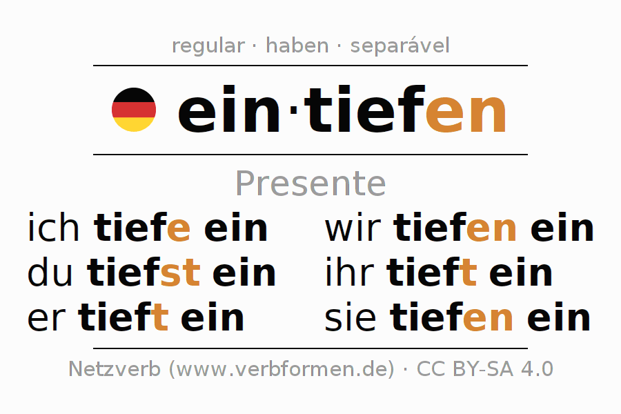 O verbo eintiefen é totalmente conjugado em todas as pessoas e números no Presente Indicativo