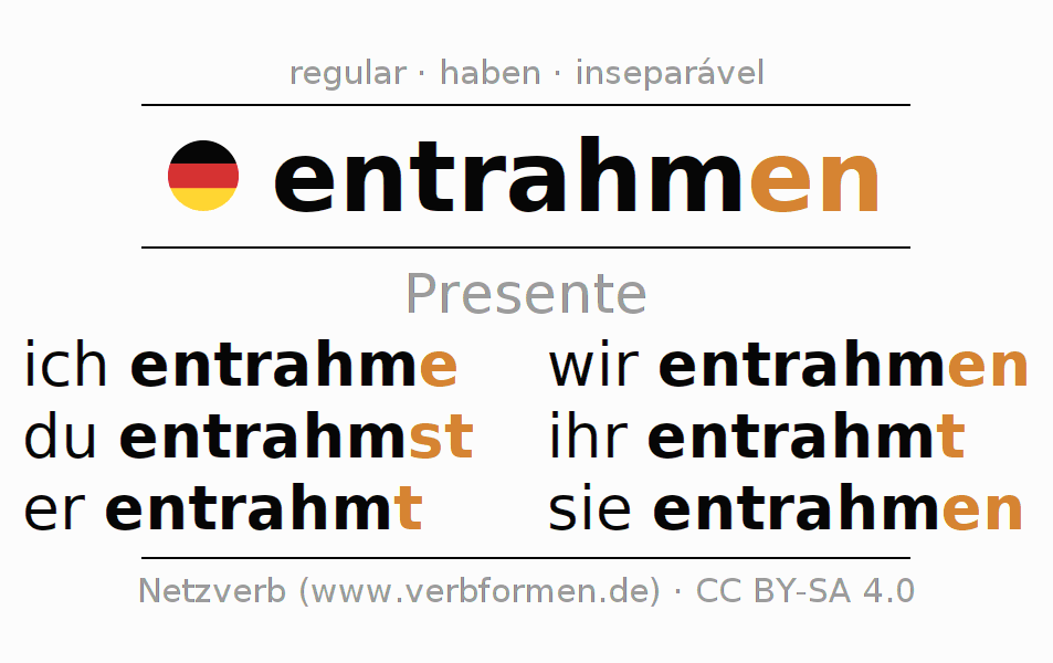 O verbo entrahmen é totalmente conjugado em todas as pessoas e números no Presente Indicativo