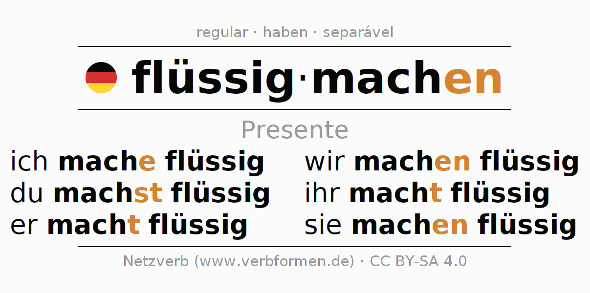 O verbo flüssigmachen é totalmente conjugado em todas as pessoas e números no Presente Indicativo
