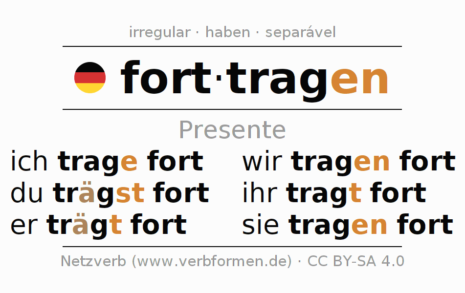 O verbo forttragen é totalmente conjugado em todas as pessoas e números no Presente Indicativo