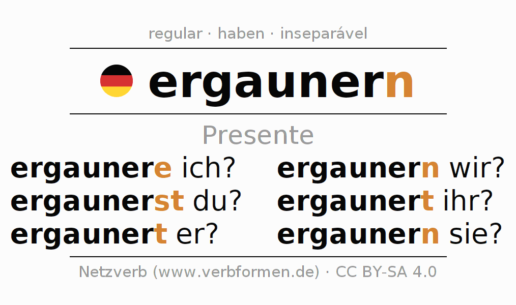 O verbo ergaunern é totalmente conjugado em todas as pessoas e números no Presente Indicativo