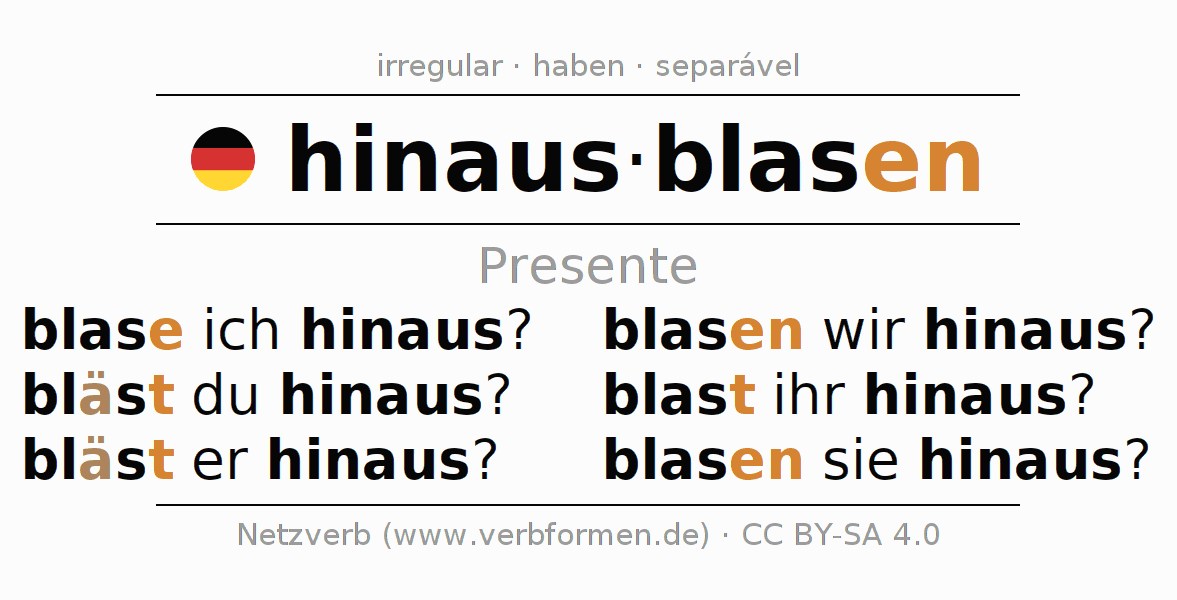- Como conjugar o verbo hinausblasen no Infinitivo?