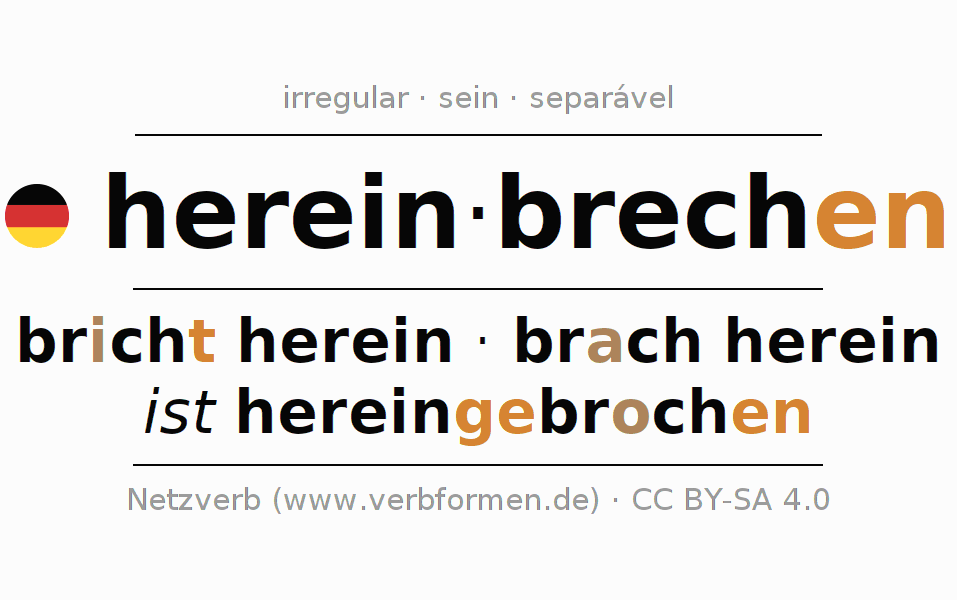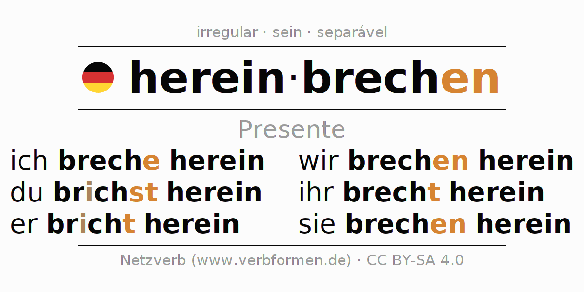 Regras adicionais para conjugação do verbo hereinbrechen