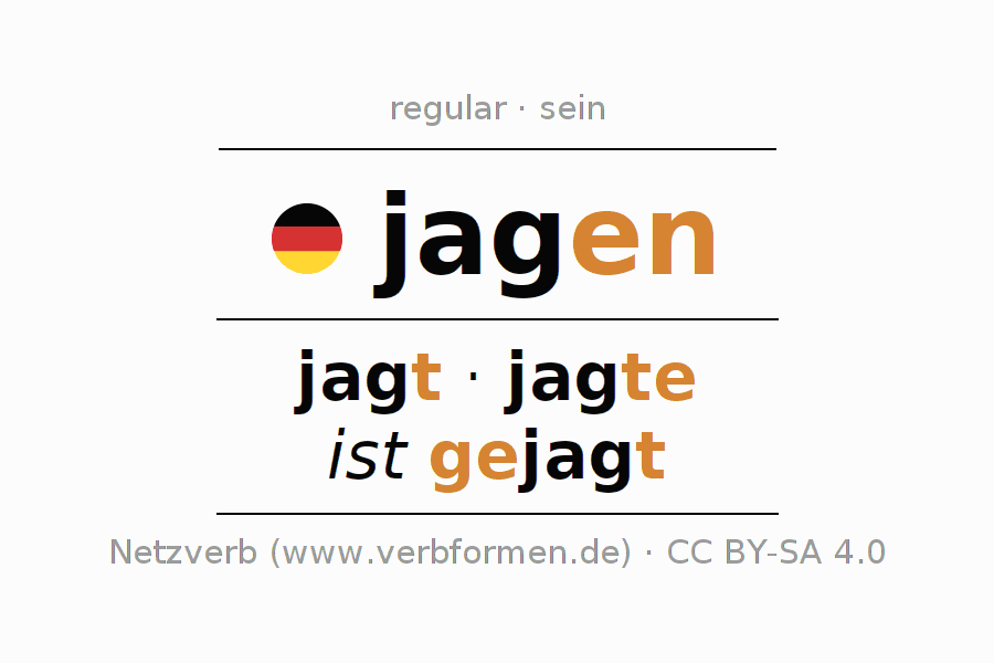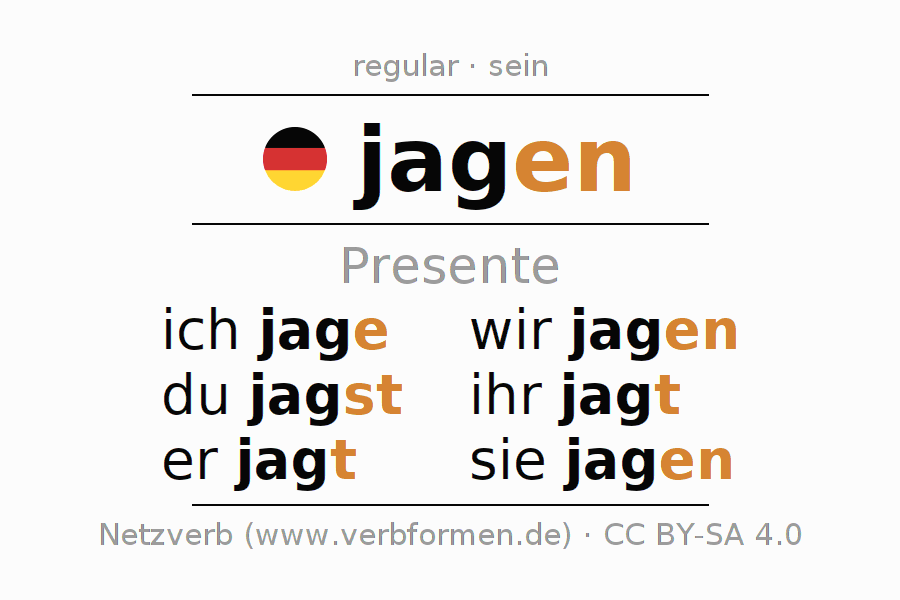 O verbo jagen (ist) é totalmente conjugado em todas as pessoas e números no Presente Indicativo