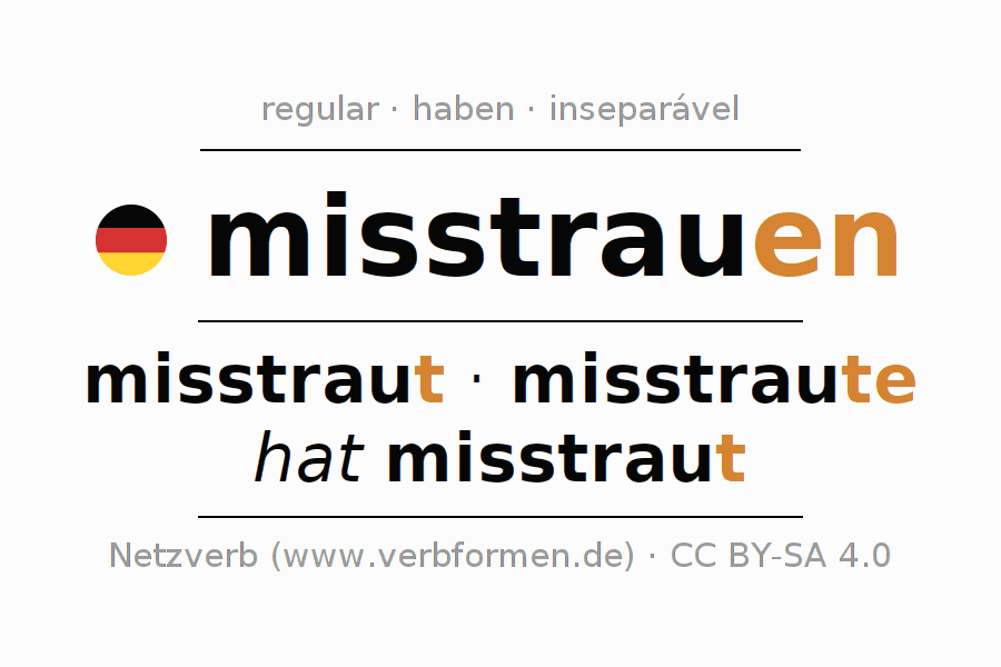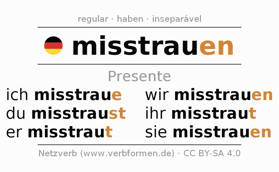 As formas de conjugação do verbo misstrauen (desconfiar, desconfiar de) no presente são: ich misstraue, du misstraust, er misstraut, wir misstrauen, ihr misstraut, sie misstrauen