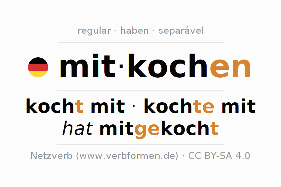 O verbo mitkochen é totalmente conjugado em todas as pessoas e números no Presente Indicativo