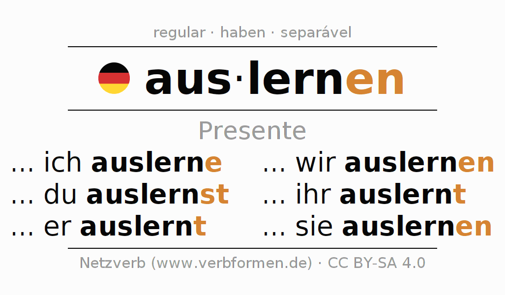 Formas verbais no Presente do verbo auslernen