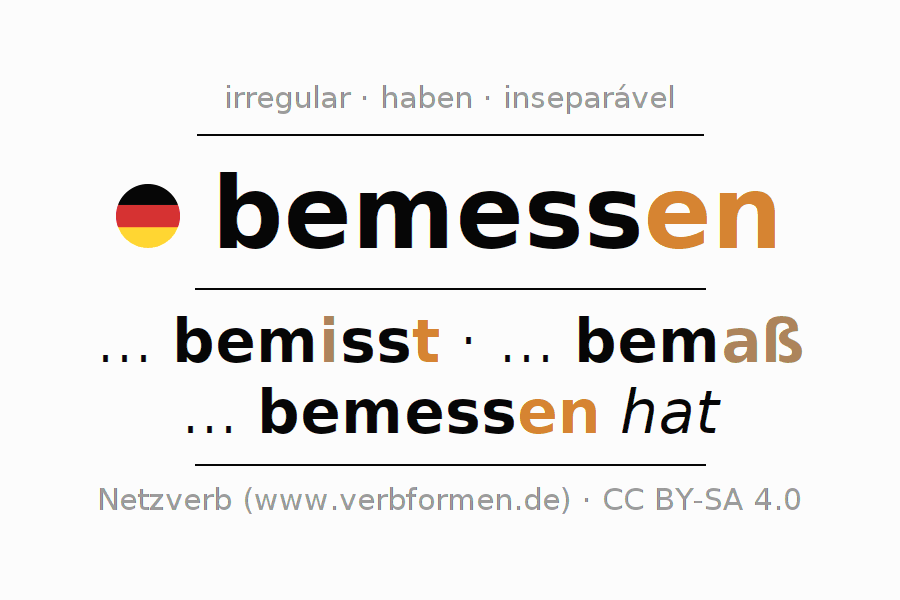 O verbo bemessen é totalmente conjugado em todas as pessoas e números no Presente Indicativo