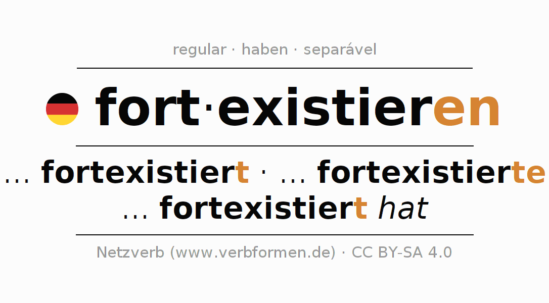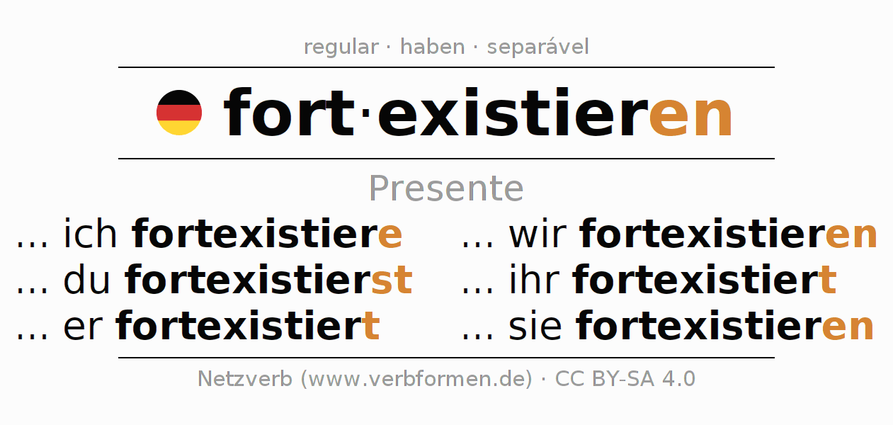O verbo fortexistieren é totalmente conjugado em todas as pessoas e números no Presente Indicativo