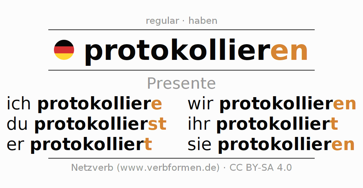 - Como conjugar o verbo protokollieren no Infinitivo?