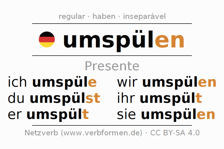 O verbo umspülen é totalmente conjugado em todas as pessoas e números no Presente Indicativo