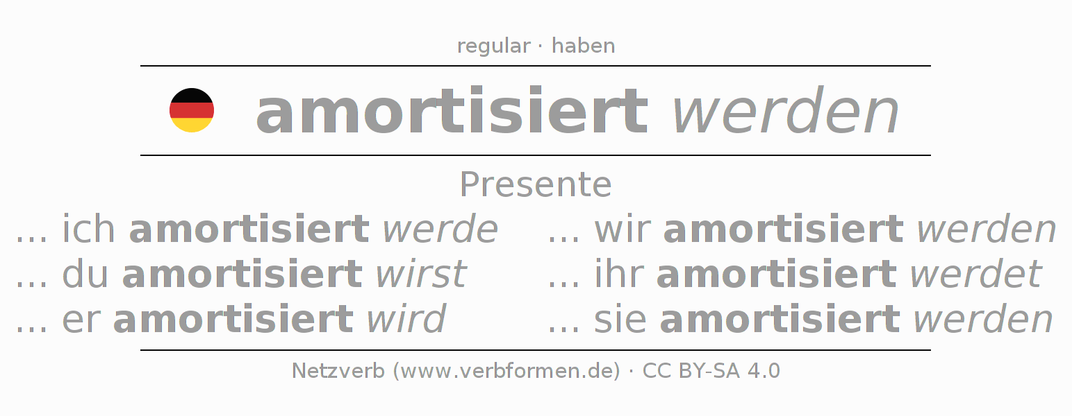 O verbo amortisieren é totalmente conjugado em todas as pessoas e números no Presente Indicativo