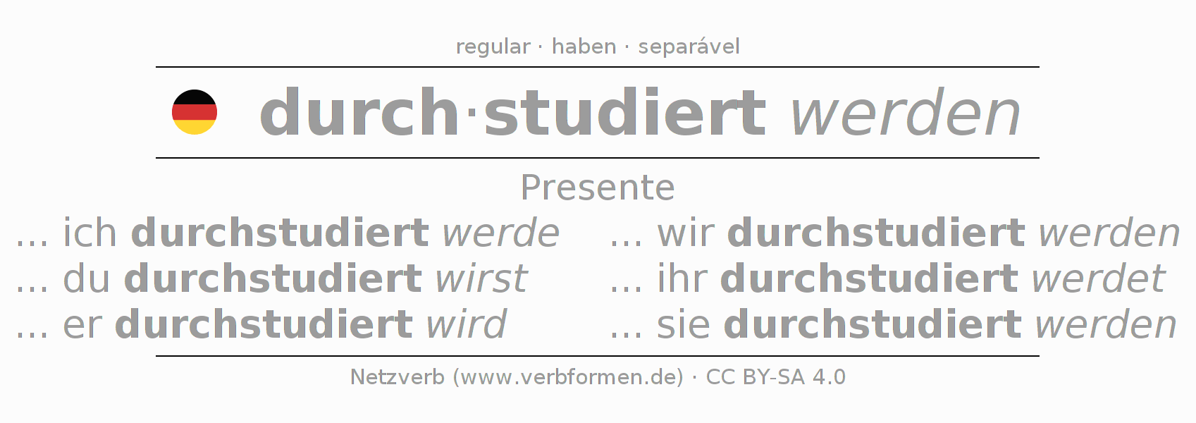 O verbo durchstudieren é totalmente conjugado em todas as pessoas e números no Presente Indicativo
