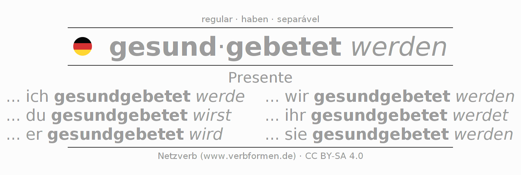O verbo gesundbeten é totalmente conjugado em todas as pessoas e números no Presente Indicativo