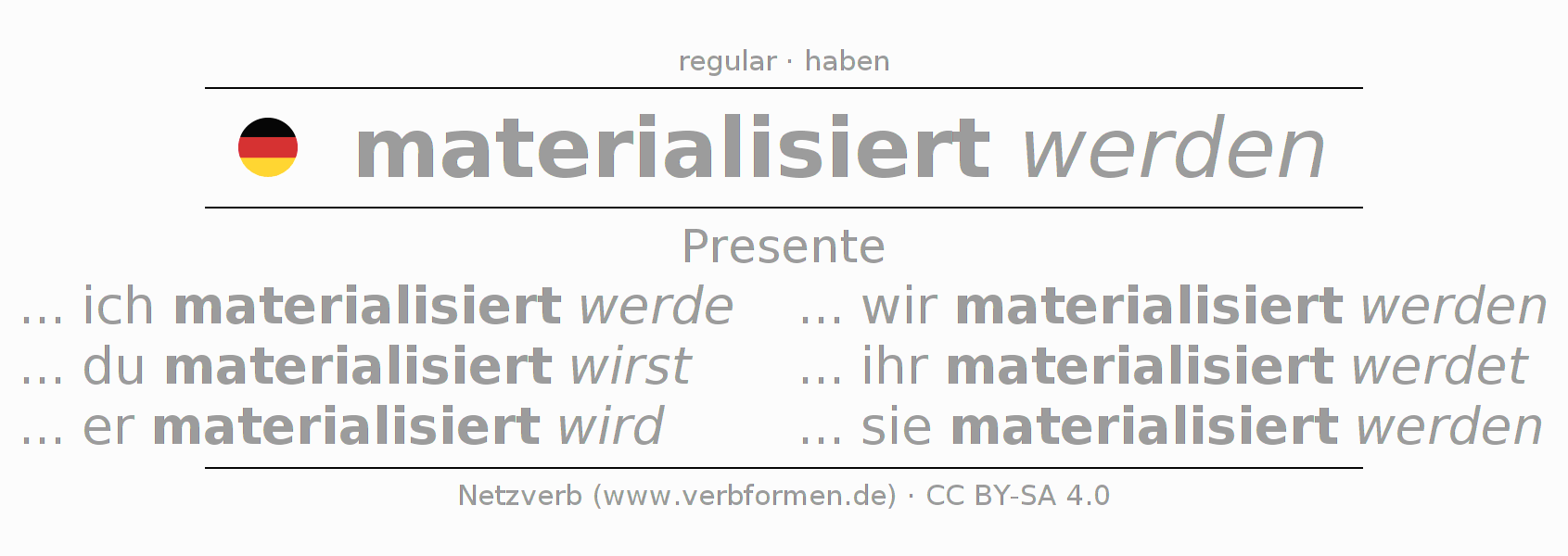 O verbo materialisieren é totalmente conjugado em todas as pessoas e números no Presente Indicativo