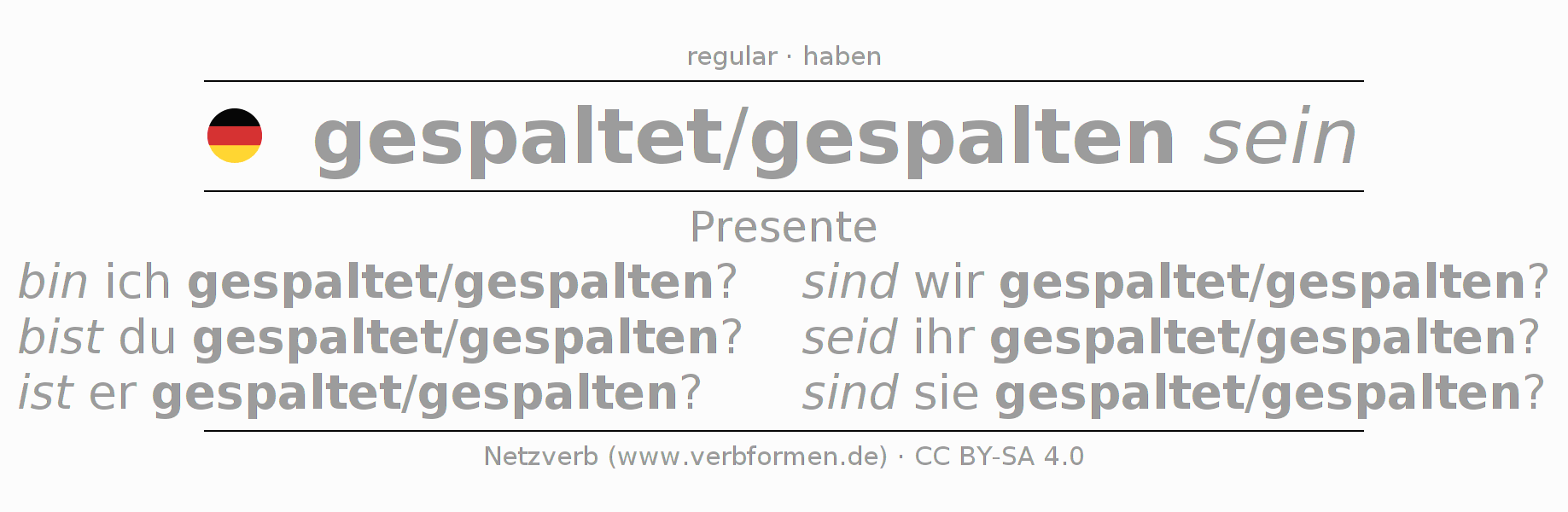 O verbo spalten é totalmente conjugado em todas as pessoas e números no Presente Indicativo