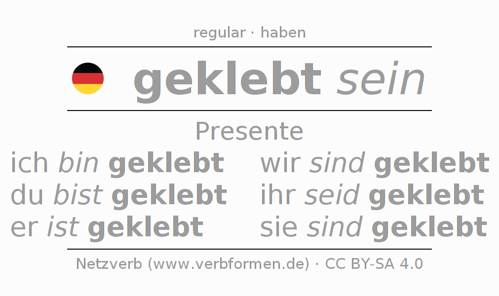 O verbo kleben é totalmente conjugado em todas as pessoas e números no Presente Indicativo