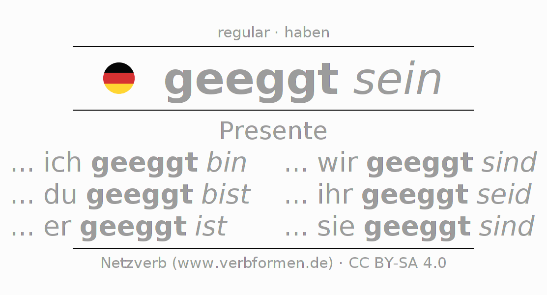 O verbo eggen é totalmente conjugado em todas as pessoas e números no Presente Indicativo
